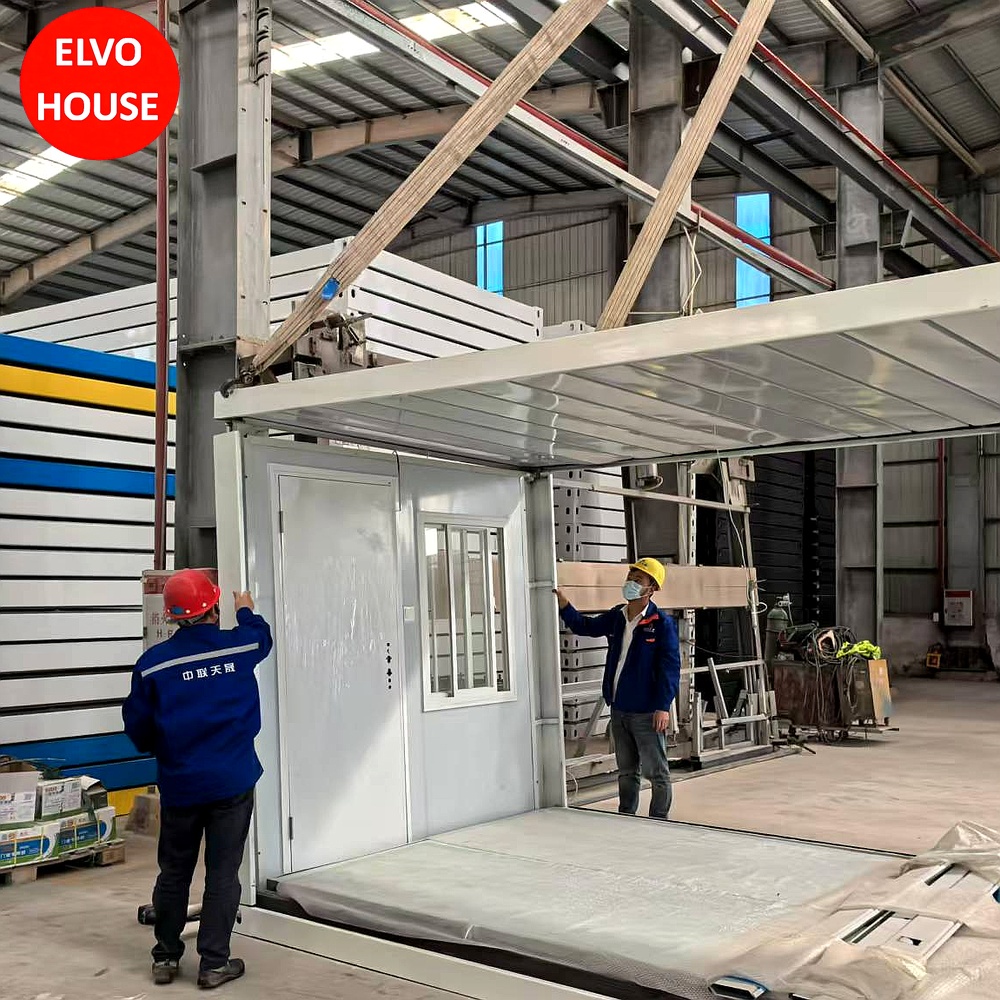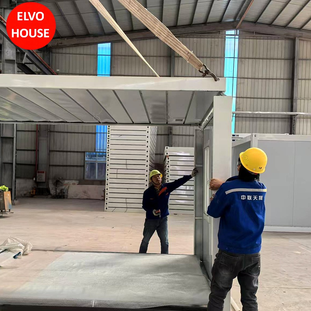 Folding container house features an integrated hinge design, folding to 1/4 size for low-cost transport. It installs in 10 minutes, with thermal insulation and fireproof performance, ideal for emergency, accommodation and mobile sites.